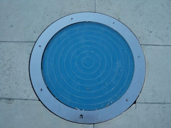 Памятник состоит из трёхсот многослойных стеклянных пластин, расположенных на одном уровне с вымощенной камнем набережной и представляет собой круг диаметром 22 метра с фотоэлектрическими солнечными элементами под ним. Рядом с основной (Солнечной) инсталляцией находятся аналогичные, меньшие по размеру инсталляции, представляющие планеты Солнечной системы. Размеры Солнца и планет пропорциональны, так же как и расстояние от центра каждой пластины. Находящиеся под стеклом солнечные элементы, накапливая энергию в течение дня, включаются ночью и создают световое шоу[1][2][3].