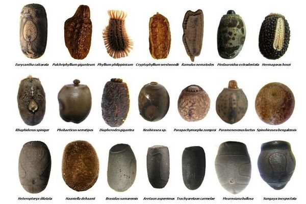 Яйца многих видов несут капитулум, вздутие, похожее на шишку, покрывающее оперкулум. Эта структура привлекает муравьёв из-за своего сходства с элайосомами некоторых семян растений, которые являются востребованными источниками пищи для личинок муравьёв и обычно способствуют распространению семян муравьями, форма мутуализма растений и муравьёв, называемая мирмекохория. Муравьи переносят яйцо в своё подземное гнездо и могут удалить капитулум, чтобы накормить своих личинок, не нанося вреда эмбриону палочника. Там в муравейнике вылупляется яйцо, и молодая нимфа, которая первоначально напоминает муравья (ещё один пример мимикрии у привиденьевых), в конце концов выходит из гнезда и забирается на ближайшее дерево в безопасное место среди листвы[21]. Яйца палочников имеют покрытие из оксалата кальция, благодаря которому они выживают в пищеварительном тракте птиц невредимыми. Было высказано предположение, что птицы могут играть роль в расселении партеногенетических видов палочников, особенно на острова[36].