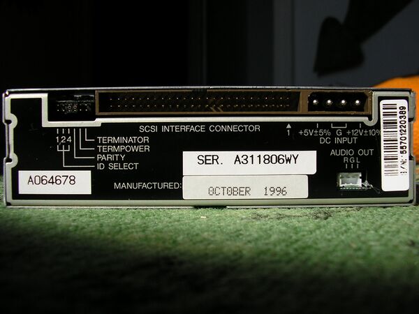 - плата электроники, где размещены все управляющие схемы привода, интерфейс с контроллером компьютера, разъемы интерфейса и выхода звукового сигнала.