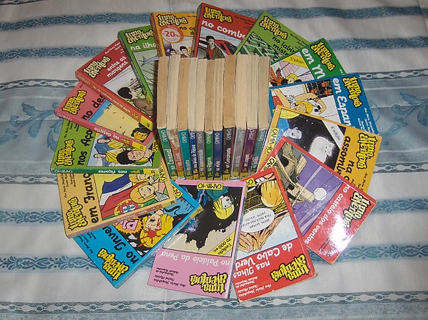 По данным газеты Notícias Magazine, первая книга серии — «Приключение в городе» — была написана в ноябре 1981 года[2], однако согласно Diário de Notícias и Observador, книга была написана за три месяца, с января по апрель 1982 года[5][6]. Три издателя отказали в публикации книги[1][5][6]. Издательство Caminho согласилась опубликовать книгу при условии, что Магальяйнш и Алсада напишут второй том[1]. Источником для второй книги — «Приключение на рождественских каникулах» — послужили впечатления Магальяйнш от поездки в Траз-уш-Монтиш[7]. Обе книги были изданы одновременно, 25 ноября 1982 года[3].