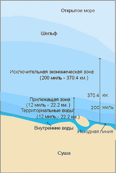 Международное право не допускает расширения прилежащих зон за пределы 24 морских миль (44,4 км), отсчитываемых от тех же исходных линий, от которых отмеряется территориальное море.