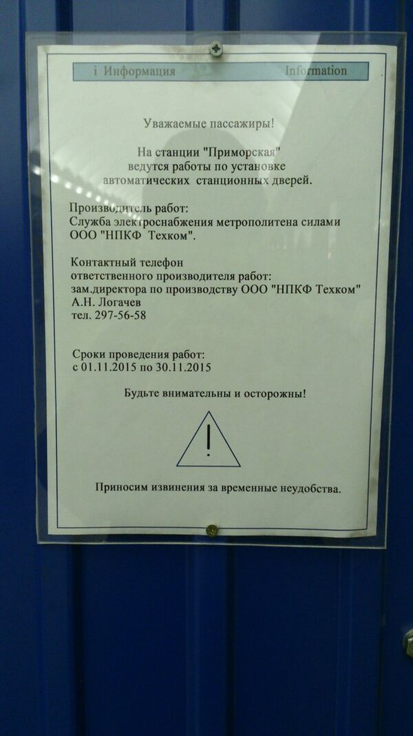 С ноября 2015 года по 2017 год проводились испытания автоматических станционных дверей.