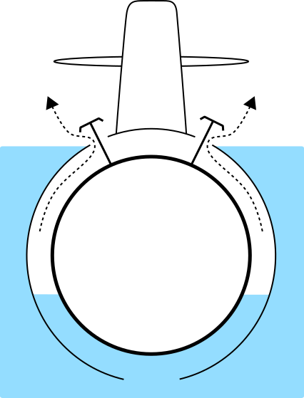 Соляр достаточно легко отделяется от морской воды отстаиванием, при этом практически не смешивается, поэтому применяют такую схему. Топливные цистерны располагаются в нижней части лёгкого корпуса. По мере расходования топлива оно замещается забортной водой. Поскольку разница плотностей соляра и воды примерно 0,8 к 1,0, соблюдается порядок расходования, например: носовая цистерна левого борта, затем кормовая правого, затем носовая цистерна правого, и так далее, чтобы изменения в дифферентовке были минимальны.