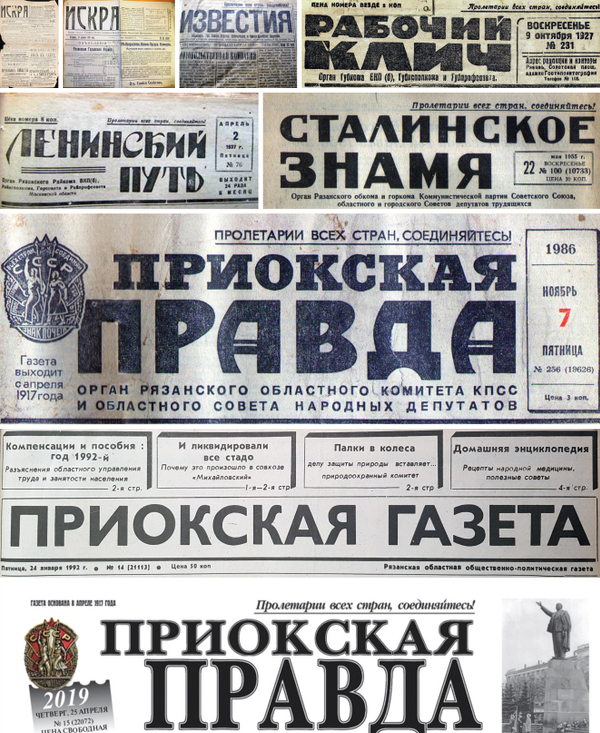 - 20 июня 1956 года — 27 августа 1991 года[8] — «Приокская правда», орган Рязанского областного комитета КПСС и областного Совета народных депутатов;