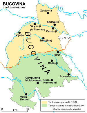 28 июня 1940 года румынское правительство после многочисленных консультаций с нацистской Германией, фашистской Италией и союзниками по Балканской Антанте соглашается на ультиматум CCCР, после чего был дан приказ на вывод румынских войск с территории Бессарабии, Северной Буковины и района Герцы[52].