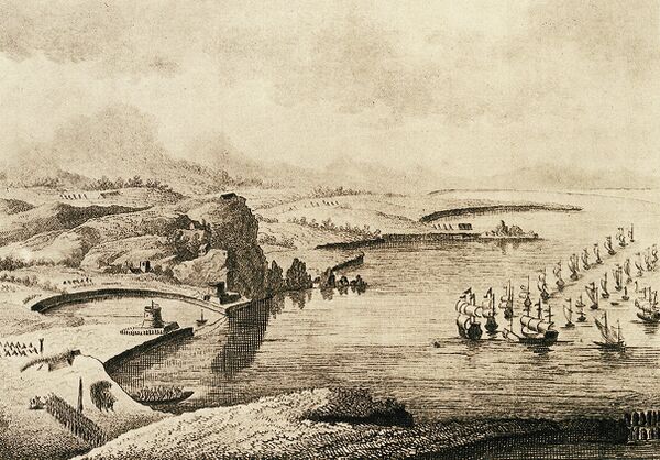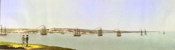 В 1787 году императрица Екатерина II совершила путешествие на Крымский полуостров через Перекоп, посетив Карасубазар, Бахчисарай, Ласпи и Севастополь. На рейде Севастополя её встретил созданный под руководством князя Потёмкина Черноморский флот в составе трёх линейных кораблей, двенадцати фрегатов, двадцати корветов и бригов, трёх бомбардирских лодок и двух брандеров[7][неавторитетный источник?]. Находившийся в свите императрицы французский посол Сегюр отмечал, что «несколько зданий для складки товаров, адмиралтейство, городские укрепления, 400 домов, толпы рабочих, сильный гарнизон, госпиталь, верфи, пристани торговая и карантинная — всё придавало Севастополю вид довольно значительного города». Флот, находившийся в подчинении князя Потёмкина с 13 (24) августа 1785 года, снаряжала вся Российская империя: суда строились на Воронежской верфи и в Белоруссии (канонерские лодки, десантные суда и др.), Белоруссия также поставляла парусину, канаты, сукно для обмундирования, в Туле и на Урале производили пушки, из разных губерний в Севастополь, помимо морских команд, было направлено несколько сот рабочих. В новый военный порт были направлены корабли Балтийского флота, а офицерами и матросами с Балтики комплектовали экипажи Черноморского флота. В первые дни очередной русско-турецкой войны Севастопольский флот попал в жестокий шторм и был рассеян, но Потёмкин приложил все усилия для восстановления Черноморской эскадры[24].