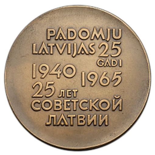 - 21 июля 1965 года выпущены юбилейные медали, нагрудные значки, на почтовых отделениях республики было произведено специальное гашение конвертов «25 лет Советской Латвии».