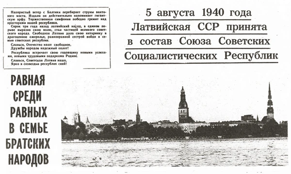 5 августа 1940 года Латвия вошла в состав СССР как одна из союзных республик.