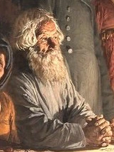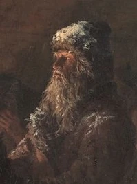 Старые, умудрённые опытом крестьяне без особого беспокойства отнеслись к приходу колдуна, который для них не был неожиданностью, — они знают, что от него можно откупиться подарками, «для него готовы и хлеб-соль, и деньги, и вино». Отец невесты — седобородый крестьянин по правую руку от молодых — продолжает спокойно сидеть за столом, а находящиеся напротив него старик со старухой даже не повернулись в сторону непрошеного гостя[38]. Характерными чертами отца невесты являются «особая степенная мудрость русского человека и спокойствие, граничащее с величавостью»[53]. Девушка в отделанном жемчугом головном уборе, стоящая за его спиной, — по-видимому, сестра новобрачной[54].