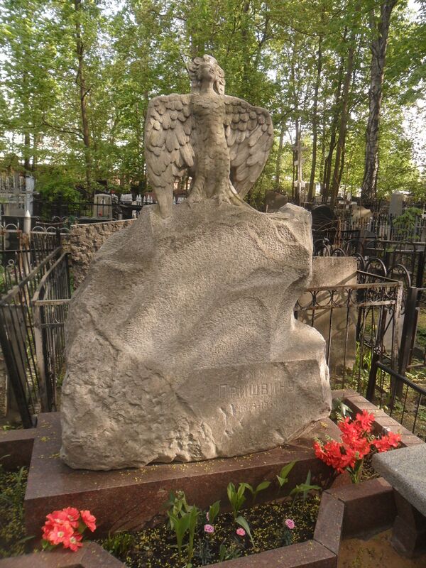 Последние полгода писатель был болен раком желудка[27]. Скончался Михаил Михайлович Пришвин в 2 часа ночи 16 января 1954 года, в день знакомства со своей любимой. Похоронен на Введенском кладбище (18 участок). Скульптор С. Т. Конёнков, друг Пришвина, в короткий срок создал надмогильный памятник, в котором заключена идея бессмертия писателя. Птица Сирин — символ счастья. «Каждая строчка Пришвина вечно будет дарить людям счастье», — так думал Конёнков, высекая из камня памятник.