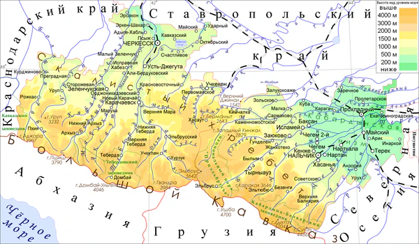 - Скалистый Кавказский хребет.