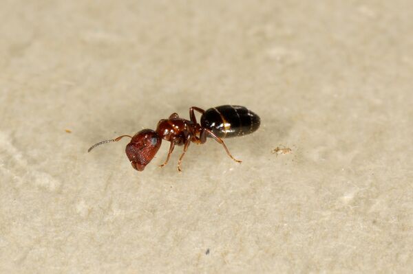 Передняя часть головы солдат как бы резко полувертикально обрублена, что позволяет этим муравьям затыкать ею словно пробкой вход в своё древесное гнездо. Длина рабочих особей 3—6 мм. Общая окраска красновато-коричневая; брюшко и верх головы — буровато-чёрные; на брюшке желтоватое кольцо на 2 тергите. Дендробионт, гнездится в древесине, колонии моногинные с одной маткой[6][5].