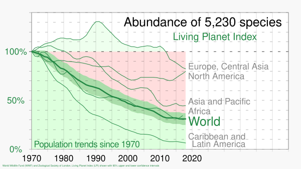 По данным исследований, проводимых Программой ООН по окружающей среде (ЮНЕП), существует вероятность того, что около миллиона видов животных и растений могут оказаться под угрозой исчезновения, в том числе, например, жирафы, попугаи, дубы, кактусы и морские водоросли[1].