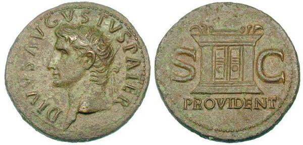 Впервые монеты с изображением алтаря Провиденции, расположенного в Лугдуне, появляются на монетах Тиберия. На их аверсе помещён «DIVVS AVGVSTVS PATER» — «божественный отец [Тиберия] Август»[4]. Этот же алтарь фигурирует на монетах Гальбы[5], Вителлия[6], а также императоров из династии Флавиев[7][8].
