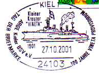 Тогдашние почтовые правила дозволяли в подобных экстренных случаях оплату наличными. Но капитан «Винеты» принял иное решение: он с разрешения верховного казначея морского флота Германской империи разрезал пополам по вертикали 300 почтовых марок номиналом в 5 пфеннигов, изготовил специальный штемпель и на каждой половинке пятипфенниговой марки фиолетовыми чернилами напечатал «3PF», после чего проблема на судне была решена. Первые газеты, письма и открытки от моряков «Винеты», погашенные штемпелем Германской корабельной почты морского флота № 1, отправились на родину 17 апреля 1901 года по прибытии корабля в Пернамбуку (Бразилия) и стали достигать адресатов уже начиная с 6 мая. 28 июня 1901 года на крейсер поступил приказ из Берлина прекратить такое франкирование. Однако почтовые отправления продолжали франкироваться половинками до конца августа.