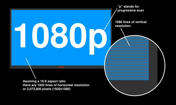 Для обозначения стандартов разложения в цифровом телевидении и видео применяют короткую запись с указанием количества строк в видеосигнале, и режима развёртки. Буквой «p» (англ. progressive scan) обозначается прогрессивная развертка. (Чересстрочная развёртка, в свою очередь, обозначается буквой «i» — англ. interlaced).