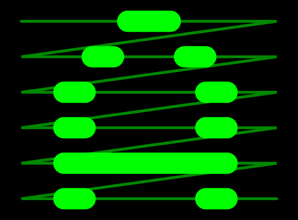 На иллюстрации показаны развёртки (слева направо): прогрессивная, чересстрочная, чересстрочная со сглаживанием и прогрессивная, полученная устранением чересстрочности методом интерполяции