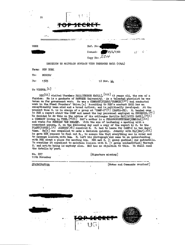 В последующие годы НКВД, возможно, предупреждённый агентами о взломе, перестал использовать ключи повторно, и возможность расшифровки была утрачена. Работа над старыми шифровками продолжалась до 1980 года[10].