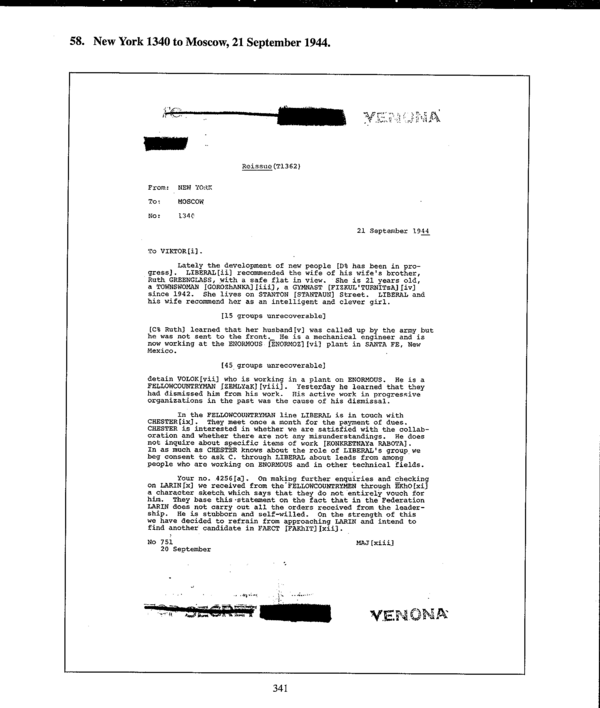 Проект был расширен. В 1947 году в курс дела было введено ФБР, которое на долгий период подключило к Мередиту Гарднеру своего офицера Роберта Лэмфера[14], впоследствии — автора первых мемуаров о «Веноне». С 1948 года началось сотрудничество США и Великобритании, тем более что некоторые ядерные шпионы были найдены в Англии. Например, Лэмфер допрашивал Клауса Фукса в Великобритании и смог получить от него показания на связного Гарри Голда (кличка «Раймонд»)[15][16]. «Венона» показала также, что неизвестный агент «Барон» сообщал в Москву из Англии результаты перехватов «Энигмы», хотя сам факт расшифровки «Энигмы» был строго засекречен[17][18][19]. При этом складывалась парадоксальная ситуация: величайший секрет разведки США — чтение советских депеш, из которых узнали, что советская разведка знала величайший секрет британской разведки, состоявший в том, что они читали немецкие депеши.