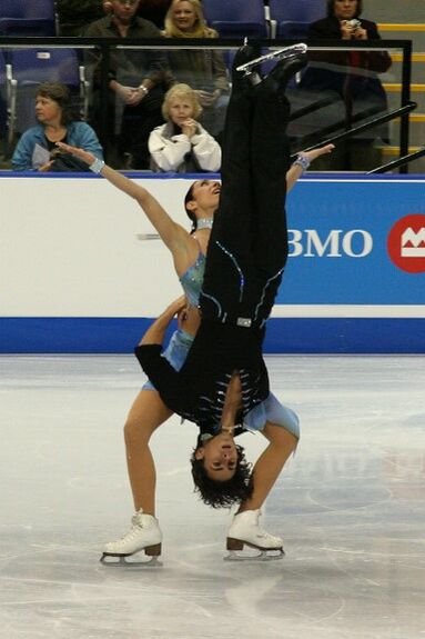 a) в танцевальной позиции вдоль центральной оси катка (от борта до борта)