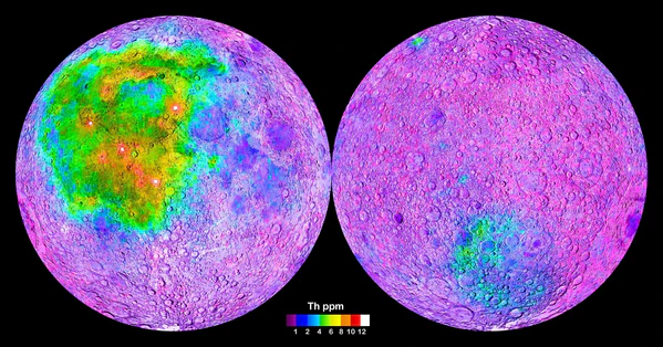 - Луна, по сравнению с Землёй, имеет весьма низкое содержание легколетучих элементов, таких, как водород, азот, фтор, инертные газы. И напротив, на Луне наблюдается некоторый излишек относительно тугоплавких элементов, например, титана, урана и тория