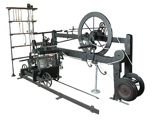 Изобретение в 1733 году летучего челнока увеличило спрос на пряжу. В 1738 году была создана машина, прявшая нить без участия человеческих рук, а в 1741 году близ Бирмингема открылась фабрика, прядильную машину на которой приводил в движение ослик. Владельцы фабрики, Пол и Вятт, вскоре открыли новую фабрику близ Нортгемптона, оснащённую уже пятью прядильными машинами с полусотней челноков на каждой, которая работала до 1764 года. Ткачом Джеймсом Харгривсом в 1765 году была изобретена механическая прялка «Дженни», на которой можно было работать с 16-18 веретенами. В 1771 году в Кромфорде, Дербишир, начала работать прядильная фабрика Аркрайта, который поощрял изобретательство, и его машины были усовершенствованы, теперь они приводились в движение водяным колесом. Кроме того, теперь кроме шерсти на новых машинах стало возможно обрабатывать и растительное волокно, импортируемое из Америки. К 1780 году в Англии насчитывалось 20, а ещё через 10 лет — 150 прядильных фабрик и на многих из этих предприятий работало по 700—800 человек[14].