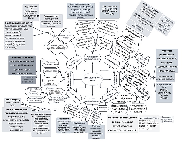 - Промзоны (какие страны и в каком объёме производят промышленные товары)