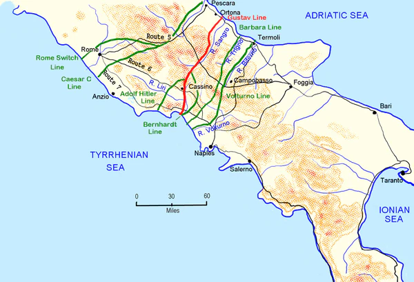 После высадки Союзников в Италии германские войска для замедления их продвижения организовали несколько оборонительных позиций, протянувшихся через всю Италию от одного побережья до другого. Линия Вольтурно (ещё известная как «Линия Виктора») была самой южной из них. Она тянулась от Термоли на востоке вдоль реки Биферно через Апеннинские горы, и далее на запад вдоль реки Вольтурно.