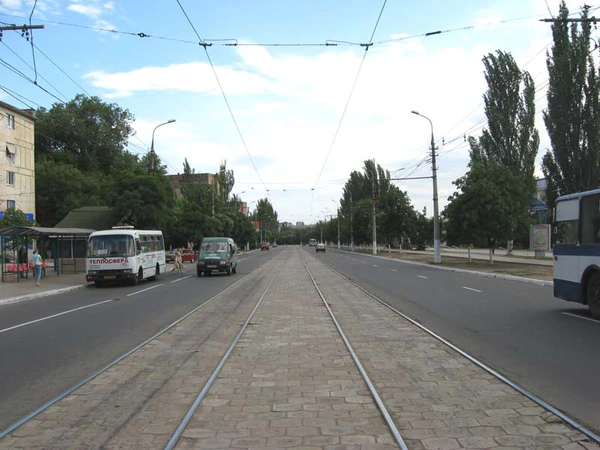 От бульвара Шевченко до Никопольского проспекта центр проезжей части занимают трамвайные рельсы (см. Мариупольский трамвай). На проспекте расположены Городской сад, Лугопарк имени Гурова, Экстрим-парк.