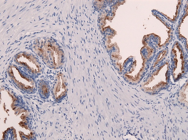 Простатический специфический антиген является полипептидом, состоящим из 237 остатков аминокислот, имеет несколько дисульфидных мостиков. Белок гликозилирован и вырабатывается как нормальными, так и опухолевыми клетками выводных протоков желёз простаты[2]. Простатический специфический антиген является протеазой химотрипсинового типа, эта ферментативная функция необходима для разжижения эякулята[14][14]. В норме небольшое количество простат-специфического антигена поступает в эякулят и секрет простаты и очень незначительное количество попадает в кровь. К экстрапростатическим источникам относят парауретральные железы, молочная железа и амниотическая жидкость[2].