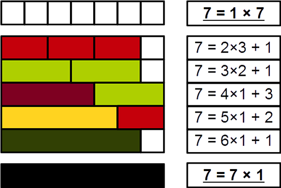 Основная теорема арифметики утверждает, что каждое натуральное число, большее единицы, представимо в виде произведения простых чисел, причём единственным способом с точностью до порядка следования сомножителей[14]. Таким образом, простые числа являются элементарными «строительными блоками» натуральных чисел. Например: