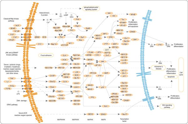 MAPK/ERK-киназы принимают участие в особом пути сигнальной трансдукции. ERK — или классические МАР-киназы, регулируются внеклеточными сигналами.[27]