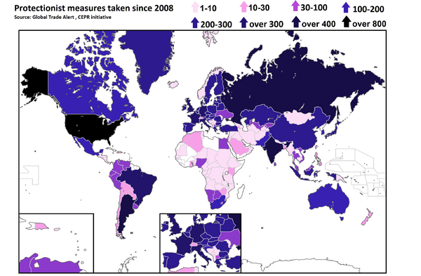 Все государства используют (или использовали) те или иные меры протекционистской политики в своей истории в связи с тем, что существует положительная зависимость между мерами протекционизма (высоким уровнем импортных пошлин, девальвации национальной валюты, субсидиями экспортных и внутренних отраслей) и ростом валового национального дохода[39][40][41][42][43].