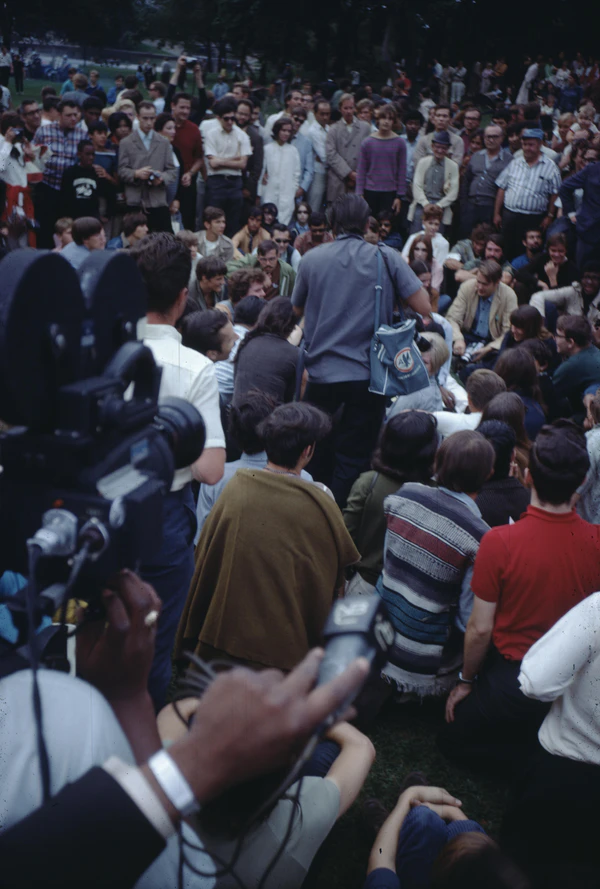 Протестующие собрались в Линкольн-парке, где решили расположиться на ночь. Но с 1940 года в Чикаго действовало правило, запрещавшее гражданам спать в парке после 23:00. Кроме того, с половины одиннадцатого вечера в Чикаго подросткам младше семнадцати запрещалось появляться на улицах без родителей. В парке прошел митинг памяти семнадцатилетнего Дина Джонсона, остановленного полицией за нарушение этого запрета, вытащившего пистолет и убитого полицейскими. Одновременно йиппи протестовали против ввода войск стран Варшавского договора в Чехословакию (впоследствии за жестокое подавление протестов в Чикаго их участники называли город «Чехаго»).