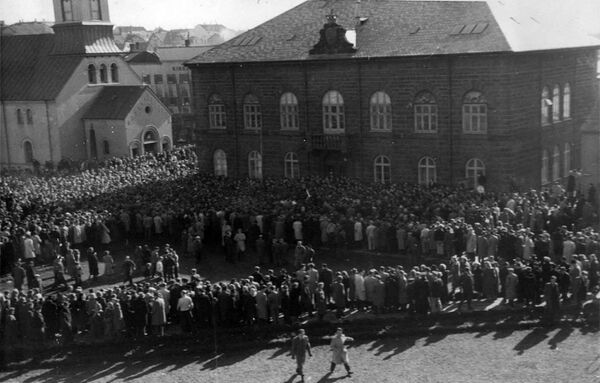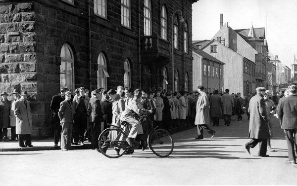 10 мая 1940 в Исландии высадились британские войска с целью недопущения вступления страны во Вторую мировую на стороне стран Оси. В июне 1941 года Великобритания передала свои полномочия в Исландии Соединённым Штатам, и 16 июня 1941 Исландия была провозглашена официально оккупированной американскими войсками. В марте 1942 года войска покинули остров. 17 июня 1944 года Исландия обретает полную независимость и становится республикой. Невзирая на протесты общественности, в сентябре 1946 года альтинг Исландии по требованию США принял решение о передаче американским войскам аэродрома в Кеблавике (в 50 км от Рейкьявика) на срок не свыше 5 лет. 30 марта 1949 альтинг собрался на очередное заседание для подтверждения вступления страны в блок НАТО.