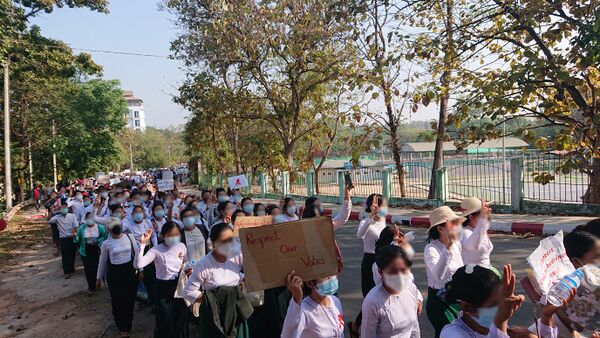 4 февраля около 20 человек приняли участие в протестной акции против военного переворота возле медицинского университета в городе Мандалай[12].