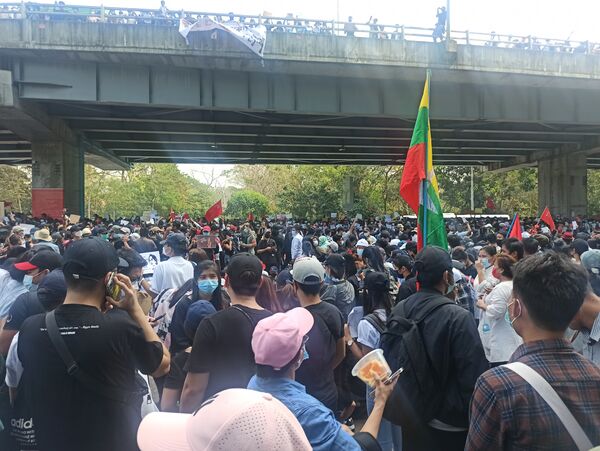 13 февраля акции протеста против военного переворота состоялись в Янгоне[35].