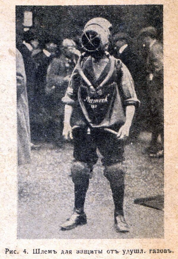В 1915 году известный русский учёный-химик Н. Д. Зелинский предложил использовать для очищения отравленного воздуха изобретённый им активированный древесный уголь, в котором (за счёт специальной обработки) создавалось большое количество пор. Технологом завода «Треугольник» М. И. Куммантом была разработана резиновая маска, защищающая лицо от действия отравляющих веществ. Именно это устройство, состоящее из резиновой маски и фильтрующей коробки, и получило название «противогаз»[8]. Интересно, что Николай Зелинский тоже не стал патентовать изобретённый им противогаз, считая, что нельзя наживаться на человеческих несчастьях, и Россия передала союзникам право его производства[9]. На доме в Санкт-Петербурге, где Н. Д. Зелинский изобрёл противогаз, установлена мемориальная доска.[10]