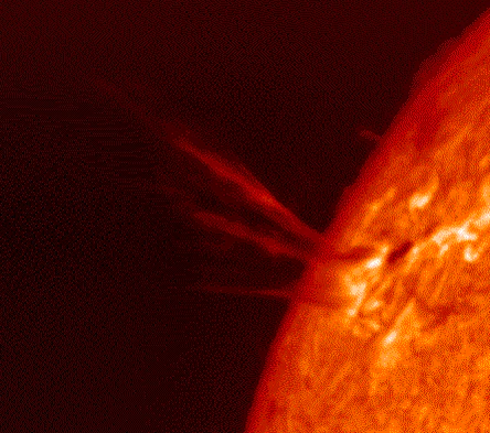 - 25 января 1991 года (вблизи максимума солнечного цикла) астрономы Udin W. и Verma V. K. зафиксировали максимальную скорость извержения протуберанцев — около 1280 км/с[4]. Но, возможно, речь идёт не о скорости вещества, а о скорости волны.