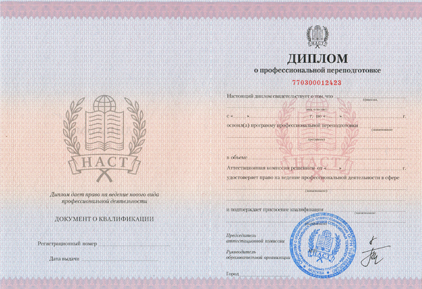 Согласно диплому о профессиональной переподготовке, полученная дополнительная специальность становится равноправной со специальностью, которая была получена ранее в техникуме или вузе.[9][10]