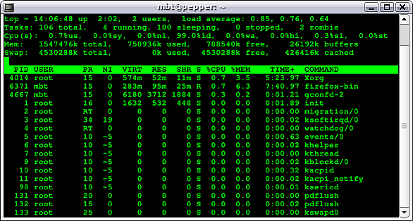 Команда Unix top отображает процессорное время, приоритет, реальное время и прочую информацию для всех процессов, обновляя данные в реальном времени.