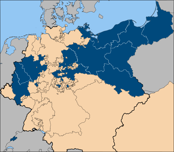 Таким образом, из 16 земель современной Федеративной Республики Германия 12 полностью или частично расположены на территориях, ранее входивших в состав Пруссии.