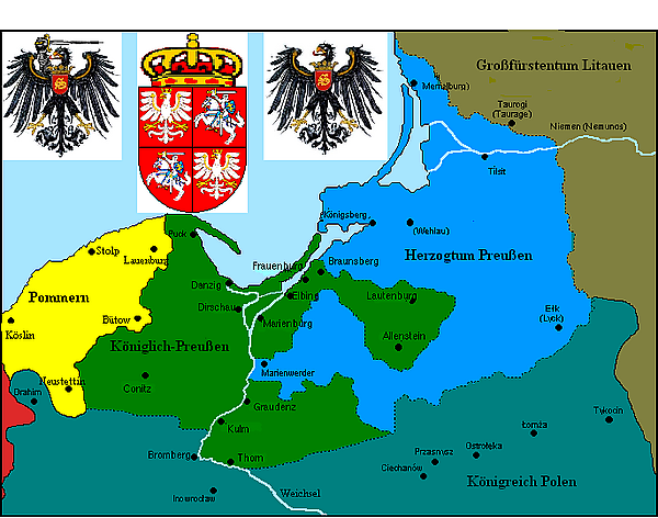В 1466 году по Второму Торуньскому мирному договору Тевтонский орден вынужден был признать себя вассалом польского короля. Некоторые сведения о повседневной жизни в орденских городах того времени можно получить из Поваренной книги Тевтонского ордена. По Торуньскому миру к Польше отошла западная часть владений ордена — Гданьское Поморье, земли Хелминьская и Михаловская, Меве, Мальборк, Эльблонг и княжество-епископство Вармия. Впоследствии эта часть владений Ордена стала называться польской или Королевской Пруссией. Орден, столицей которого после потери Мальборка (Мариенбурга) стал Кёнигсберг, признал себя вассалом польского короля.