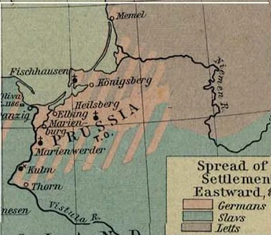 - Карта языков Восточной Пруссии в 1900 году большая (нем.) (красный = немецкий, белый = польский, синий = литовский, жёлтый = курсниекский, зелёный = незаселённые или слабозаселённые леса)