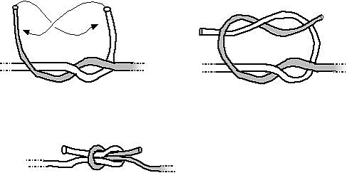 - Ткацкий способ (без петли) — перекрестить концы; держать перекрестие концов пальцами левой руки; завязать узел пальцами правой руки