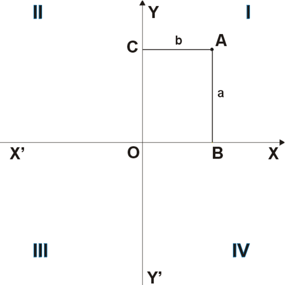 Положение точки на плоскости определяется двумя координатами и . Координата равна длине отрезка , координата — длине отрезка в выбранных единицах измерения. Отрезки и определяются линиями, проведёнными из точки параллельно осям и соответственно.
