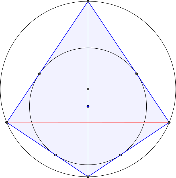 В описанном четырёхугольнике (то есть обладающем вписанной окружностью), четыре отрезка между центром вписанной окружности и точками касания четырёхугольника разбивают четырёхугольник на четыре прямоугольных дельтоида.