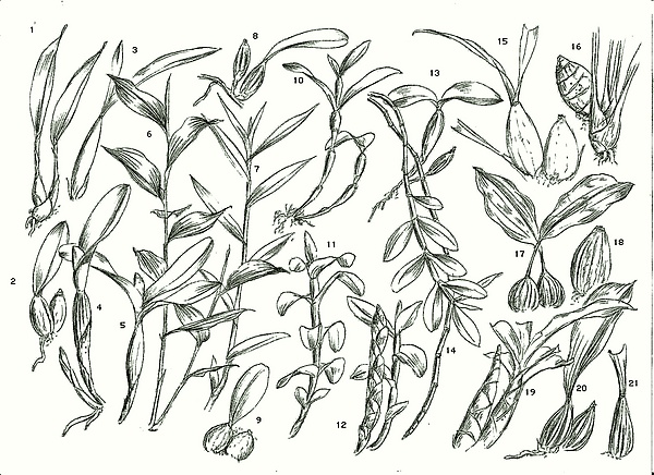 Псевдобульбы у одних видов образуются из одного междоузлия, у других — из нескольких (иногда — из всей вертикально растущей часть стебля).
