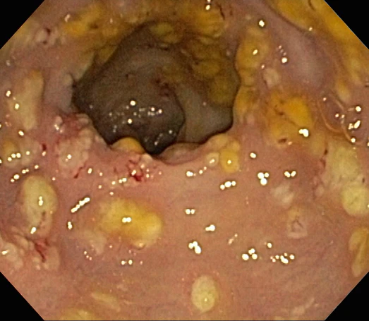 - Колоноскопия позволяет визуализировать протяжённость и выраженность воспаления толстой кишки, псевдомембраны, язвы;