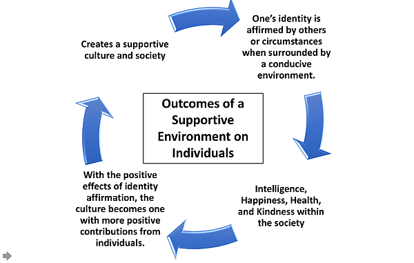 Идея взаимного формирования подразумевает, что общество и индивид оказывают влияние друг на друга. Общество оказывает прямое воздействие на каждого человека, который в нём живёт. Ценности, мораль и образ жизни, формируемые обществом, влияют на становление личности. Атмосфера, создаваемая обществом для человека, становится определяющим фактором в его дальнейшем развитии[21].